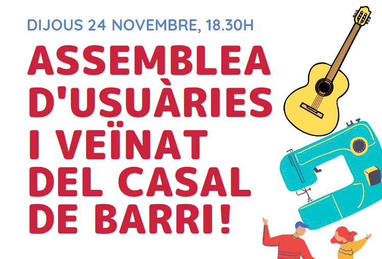 El Casal de Barri et convida a l’assemblea oberta que tindrà lloc aquest proper dijous 24 novembre, 18.30h. En aquesta assemblea t’explicarem els següents temes, i també podràs participar i dir la teva:
