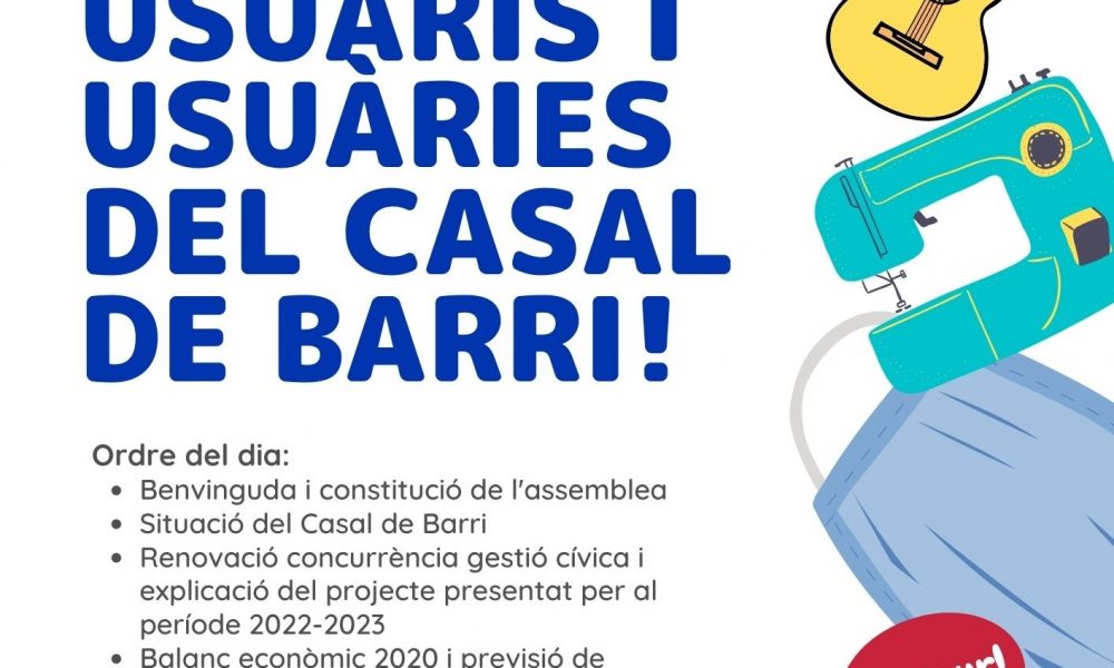 Aquest dimecres tindrà lloc l’assemblea general d’usuaris i usuàries del Casal de Barri. Tingues en compte que…