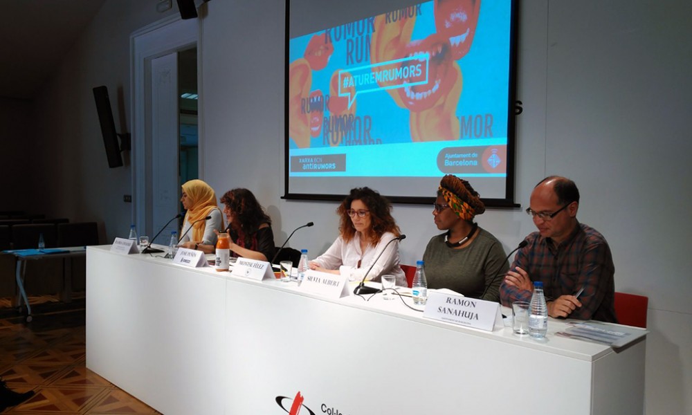Després de 2 anys de feina, vam presentar en roda de premsa la campanya #aturemrumors on l’entitat que gestiona el Casal (Assoc. Cultural i Social Bac de Roda) i el Casal de Barri han participat activament, juntament amb altres entitats membres de la Xarxa Barcelona Antirumors com són SOS Racisme Catalunya, l’Asociación Antirracista de Madres Blancas con Hijxs Negrxs / Ambhin, Casa Àsia o Servei de Convivència i d’Interculturalitat Horta-Guinardó.