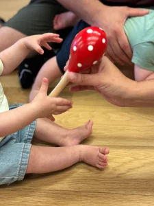 Taller familiar on, a través de jocs, cançons i activitats adaptades anem introduint la música en la vida dels nadons. La música ens ajuda a relacionar-nos, a compartir, a jugar…. Potencia la concentració, la memòria, el ritme, la coordinació i el llenguatge.