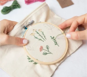 👉 Materials a portar: kit bàsic costura, la peça que vulgueu brodar (tote-bag, camisa, etc), agulles, fil de brodar i bastidor.
