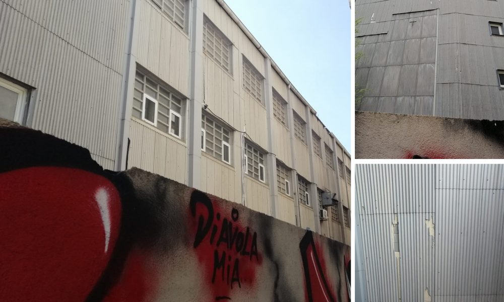 Problemes d’amiant al c/ Fluvià 77-89, antiga nau de Norma Còmics, davant de l’Escola Fluvià
