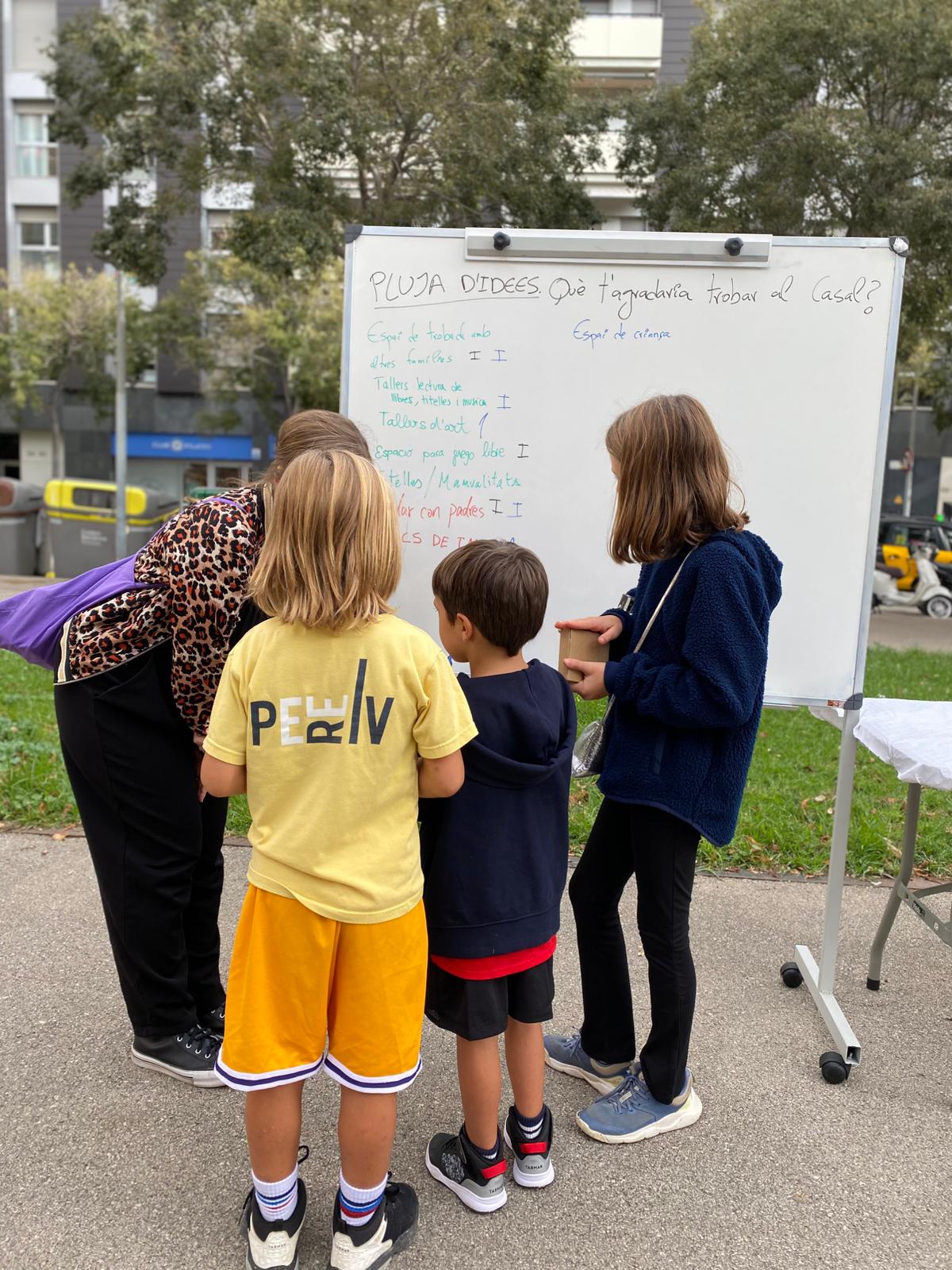 En el segon espai, Pluja d’idees, les famílies han indicat una activitat que volguessin trobar al casal. Així, han sorgit algunes idees interessants que actualment no realitzem com espais de criança, activitats per persones adultes que es pogués participar amb el nadó, conta-contes, i altres. Prenem nota!