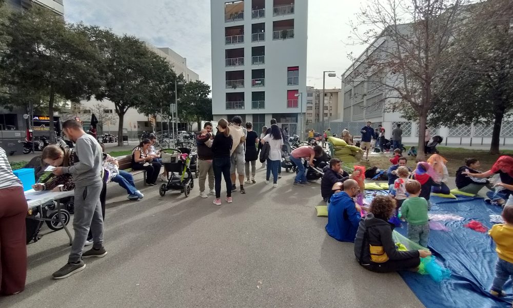 Per respondre aquesta pregunta, hem dut a terme un matí ple d’activitats participatives i lúdiques, amb taller musical a càrrec de la nostra professora d’estimulació musical, Lorena López, un espai de jocs obert gràcies a la cessió de joguines de la ludoteca del barri (Ludoteca Maria Gràcia i Pont), i un punt de refrigeri.